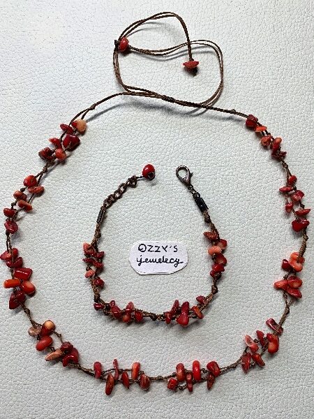 Red Coral Organic Gemstone Necklace and Bracelet